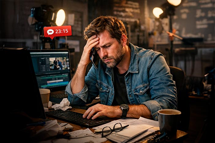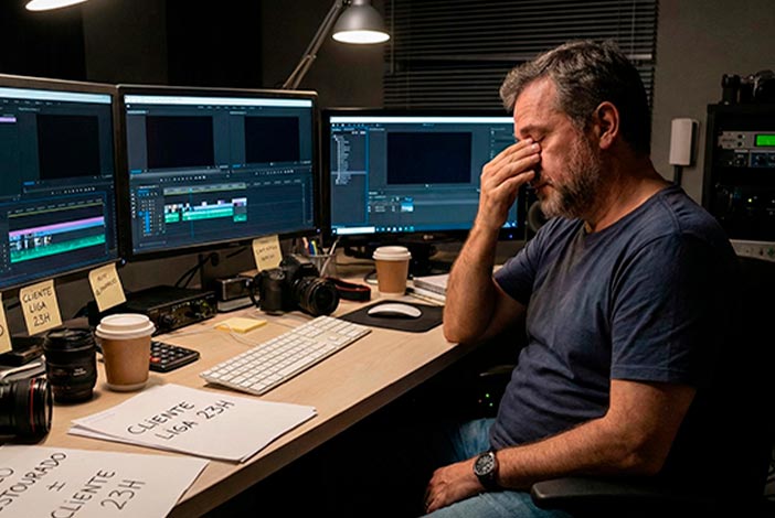 Passa a manhã gravando. A tarde gravando. A noite mandando orçamento e editando para entregar.